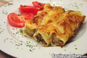 Petit truc: nous avons passé légèrement le mélange à farcir au robot pour permettre l’utilisation d’un sac à patisserie ( sans embout de métal toutefois), cela facilite grandement le « farcissement » des cannellonis… on sauve du temps!